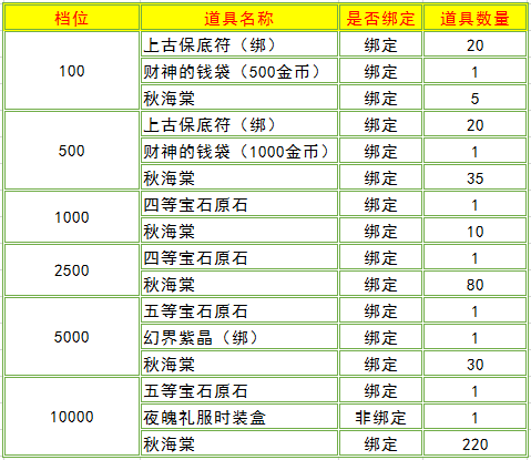 3.累计充值达到指定金额可领取该档位及以下档位奖励,每个账号每档奖励均可领取且只能领取一次;