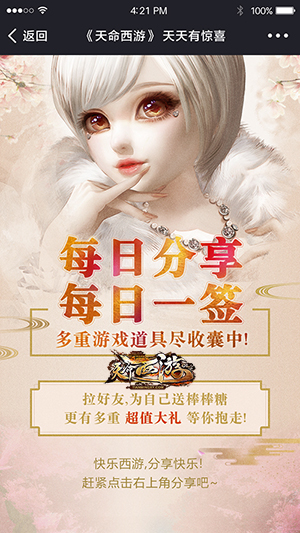 为助阵新服,特添新区“玲珑好礼”签到活动,分享给你的小伙伴们,签到既得豪礼,让我们有福同享,在分享页面相互点赞,还有意想不到的惊喜等着你来拿哟~!