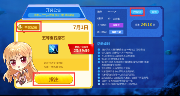 1.每日11:00停止购买,12:00开奖,13:00页面自动更新次日活动物品;