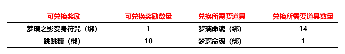 梦璃之影变身符咒(绑):使用后可变身为黑化的梦璃(效果与无间道变身符相同,仅变化外观,无属性)