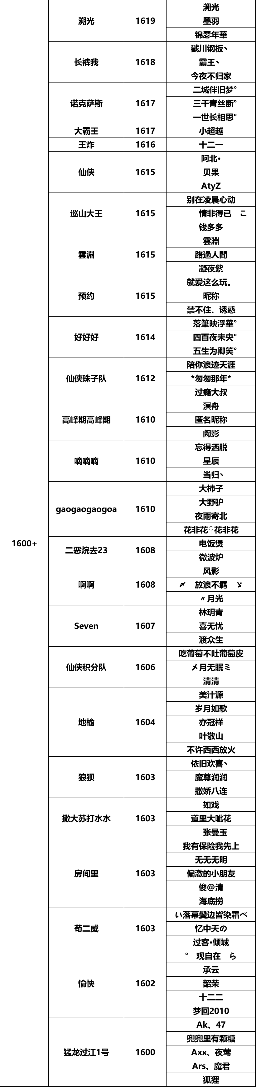 1. 仙侠大会(3V3玩法)积分到达1600的战队,将获得:五等宝石原石(绑)*1奖励