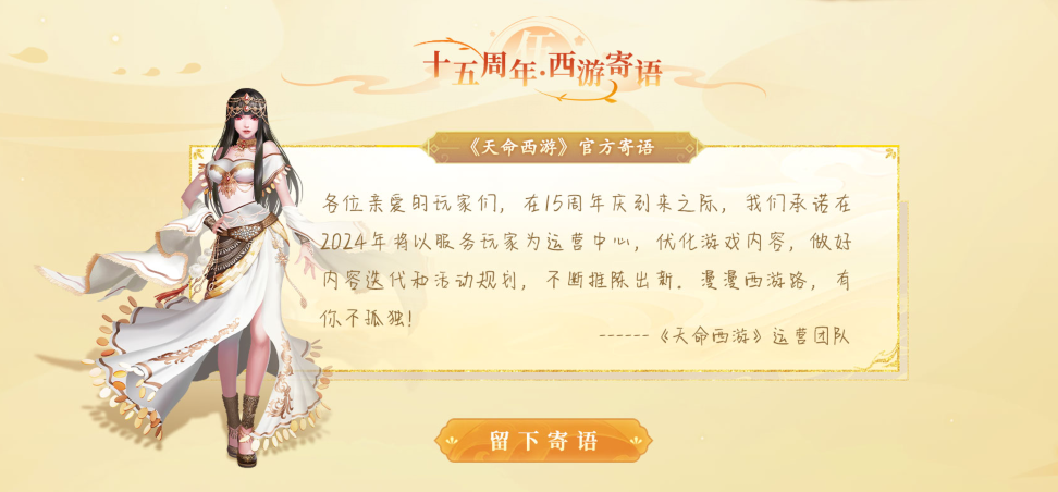 首先,让小编来祝福我们的西游又大一岁啦!在这十五年中,我们一起经历过快乐,艰辛的岁月,正是因为有了在坐每一位西游玩家的支持,才可以让这款游戏一直存在!