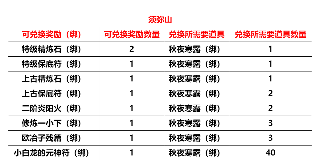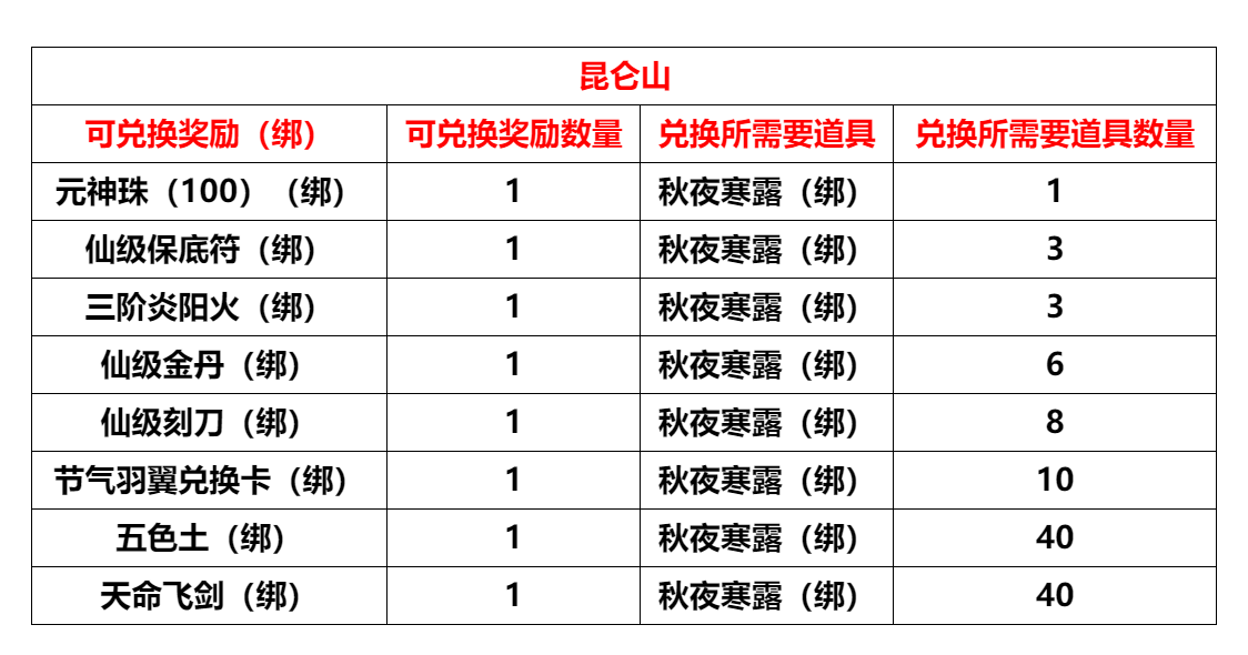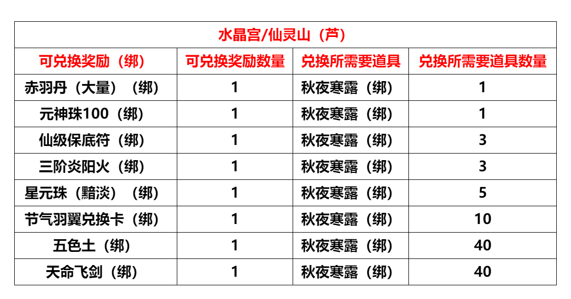 活动内容:上交25个道具【霜叶知秋(绑)】可兑换25个道具【秋夜寒露(绑)】