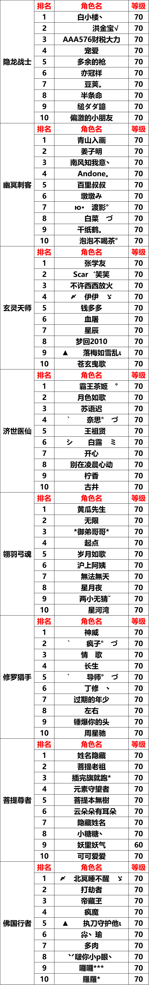 各职业综合实力排名前四至十的玩家获得:五等宝石原石(绑)*1