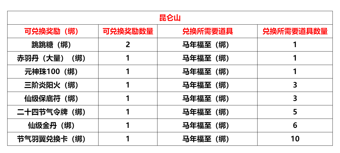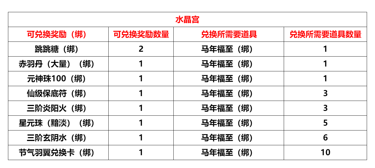 活动内容:上交25个道具【喜迎元旦(绑)】可兑换25个道具【马年福至(绑)】