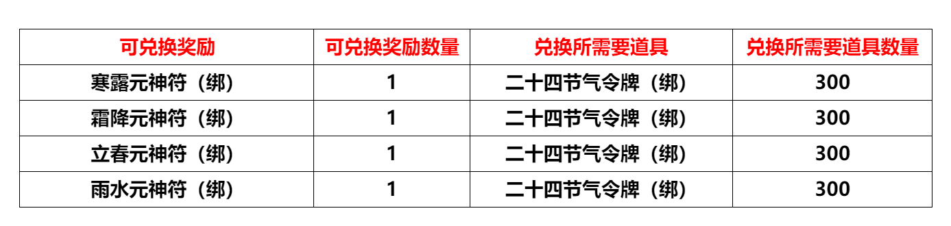 4. 四季林NPC“谷雨”新增兑换: