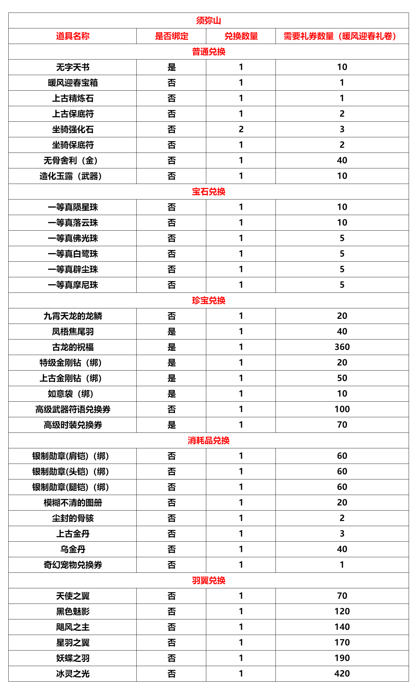 须弥山:上古玉锥(绑)*1、欧冶子残篇(绑)*5、高级装备精炼材料(绑)*1、财神的钱袋(100金)*1