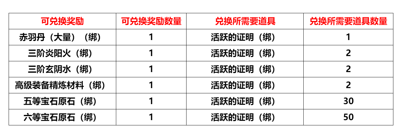 活动奖励:活跃的证明(绑)*2、三阶炎阳火(绑)*1