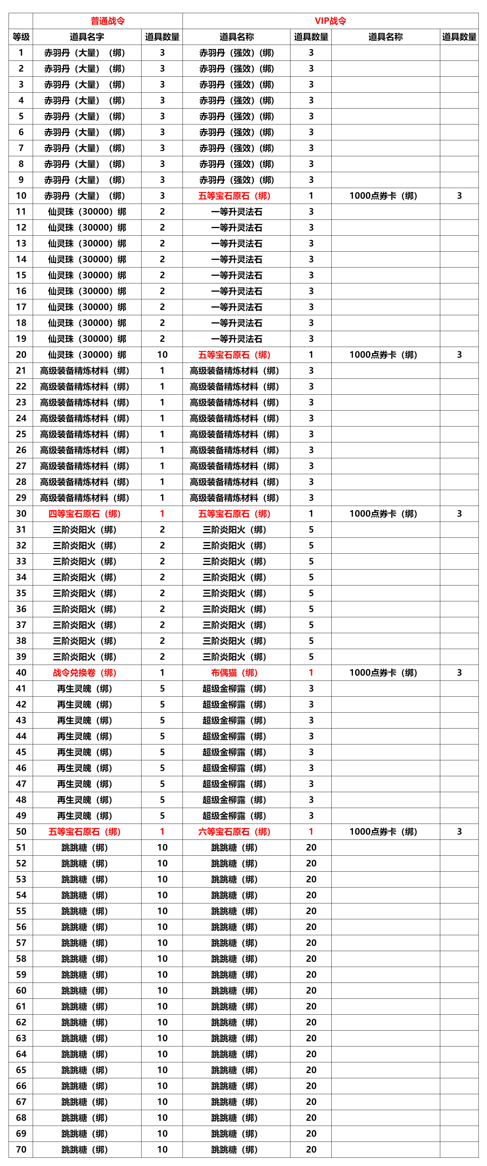 3、战令奖励一览